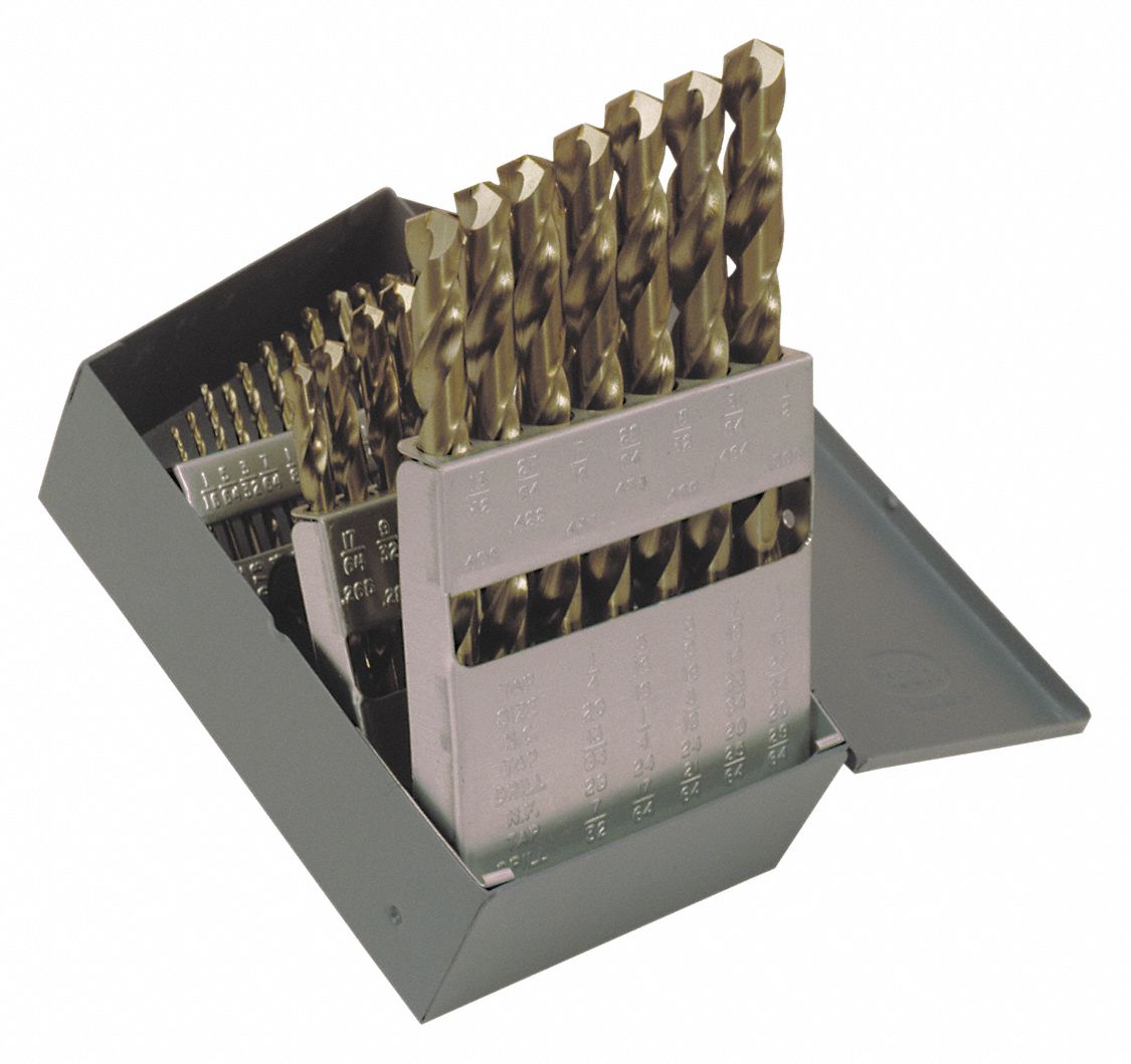 CLEVELAND 29 Pc Jobber Drill Bit Set, Cobalt Steel, Straw/Bronze